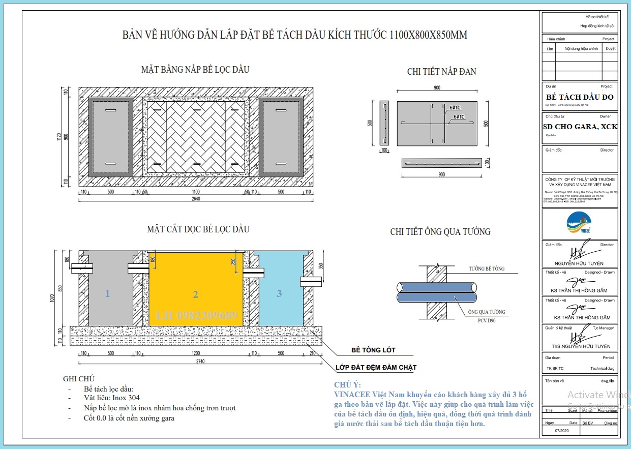 THÔNG SỐ BỂ TÁCH DẦU 2 BẬC DO 700 (DUNG TÍCH BỂ 700 LÍT) SỬ DỤNG PHÙ HỢP CHO CÁC GARA Ô TÔ QUY MÔ NHỎ.