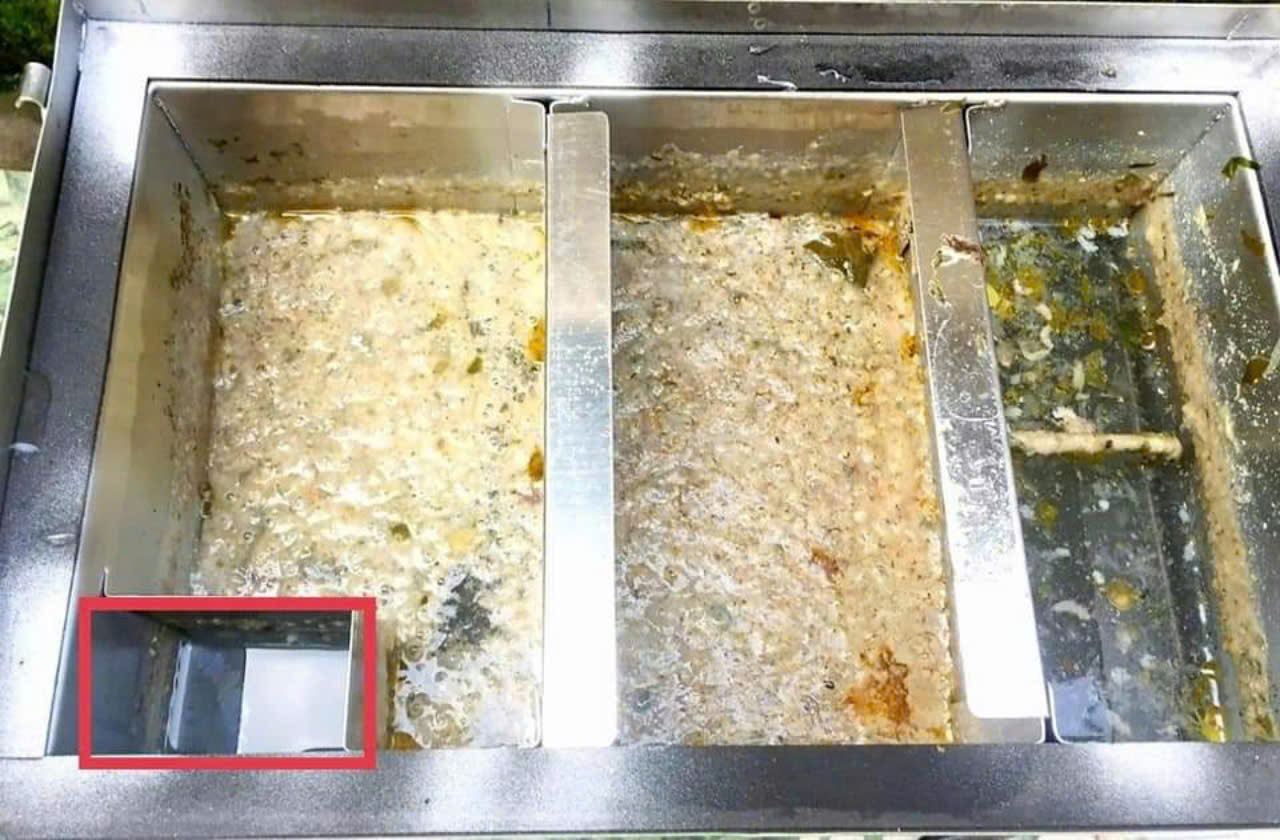 Trong khi đó, nước thải được lọc hết rác và dầu mỡ sẽ tiếp tục thoát khỏi và chạy ra các hệ thống thoát nước.