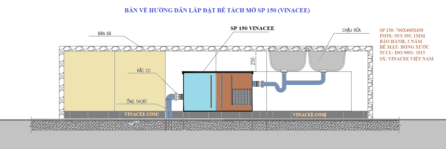Bể tách mỡ Inox chính hãng, bảo hành 2 năm, thiết kế miễn phí