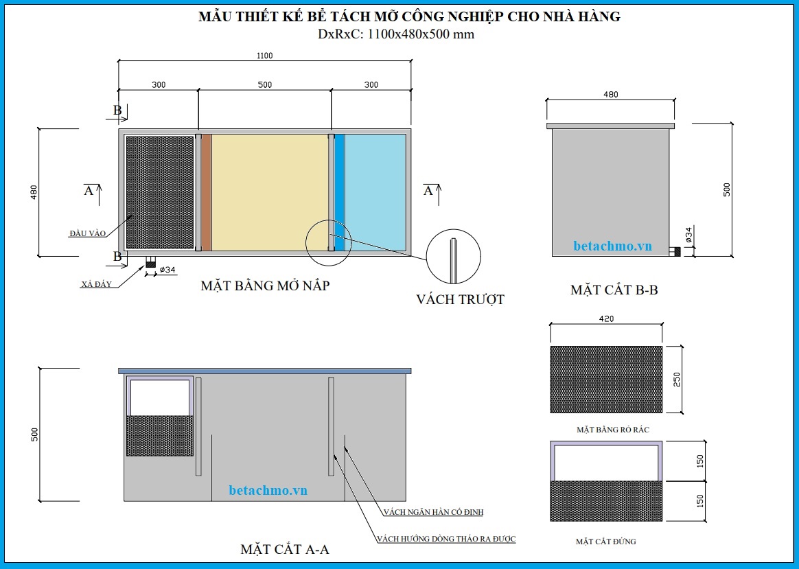 Cấu tạo bể tách dầu mỡ, thiết bị lọc mỡ (NHẬN TÀI LIỆU CHI TIẾT)
