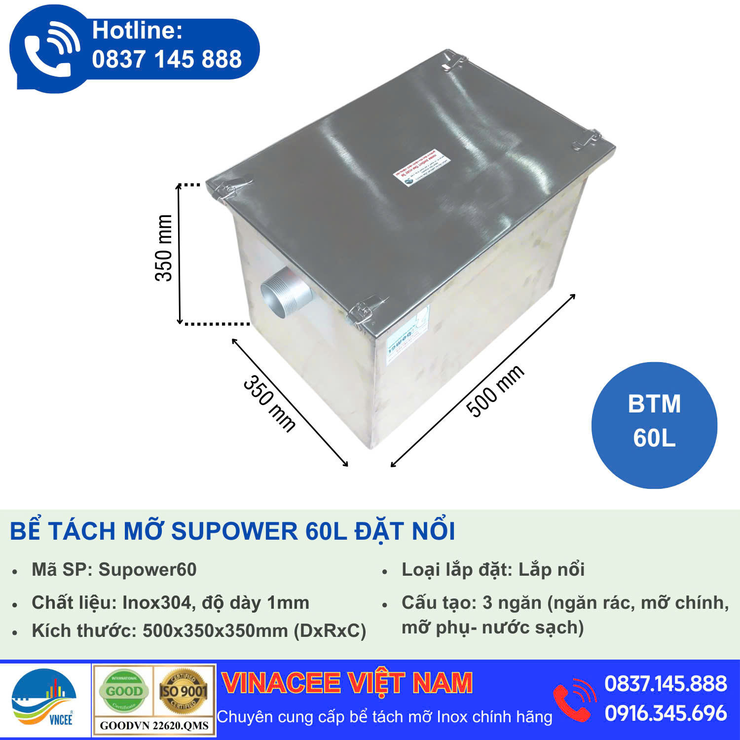 CHI TIẾT THÔNG SỐ SẢN PHẨM - BỂ LỌC MỠ INOX CAO CẤP CHO GIA ĐÌNH (MUA ƯU ĐÃI)