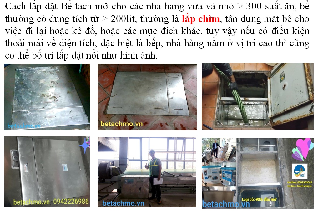 - Lắp đặt bể tác mỡ phải thuận tiện khi sử dụng hoặc vệ sinh