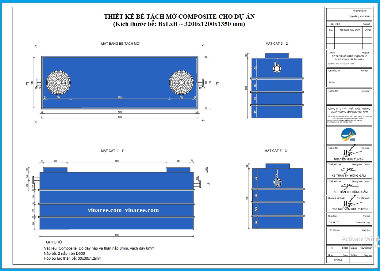Dầu mỡ được thu gom định kỳ hoặc có thể sử dụng các chế phẩm vi sinh để phân hủy ngay trong bể (Bạn nên liên hệ để nhận bản vẽ thiết kế và tài liệu sử dụng).