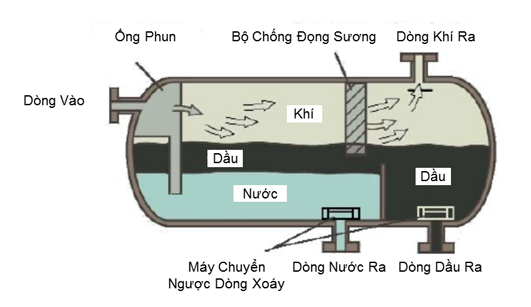 Bình tách dầu ba pha Dầu - Khí - Nước áp dụng cho tách dầu công nghiệp với dòng có áp