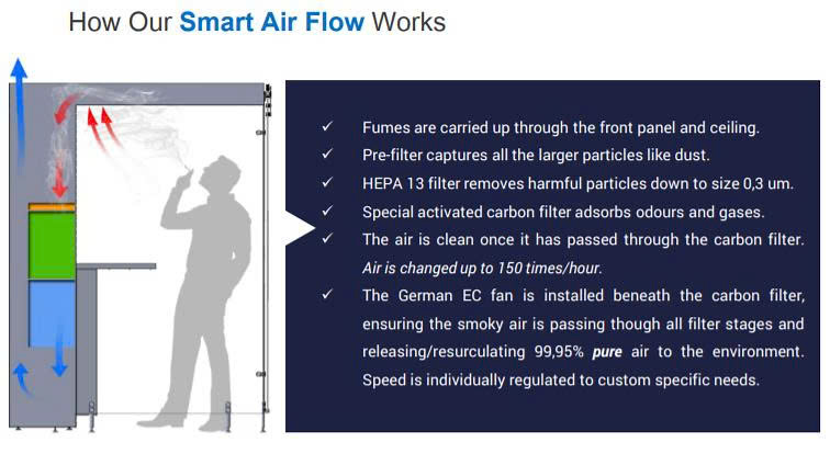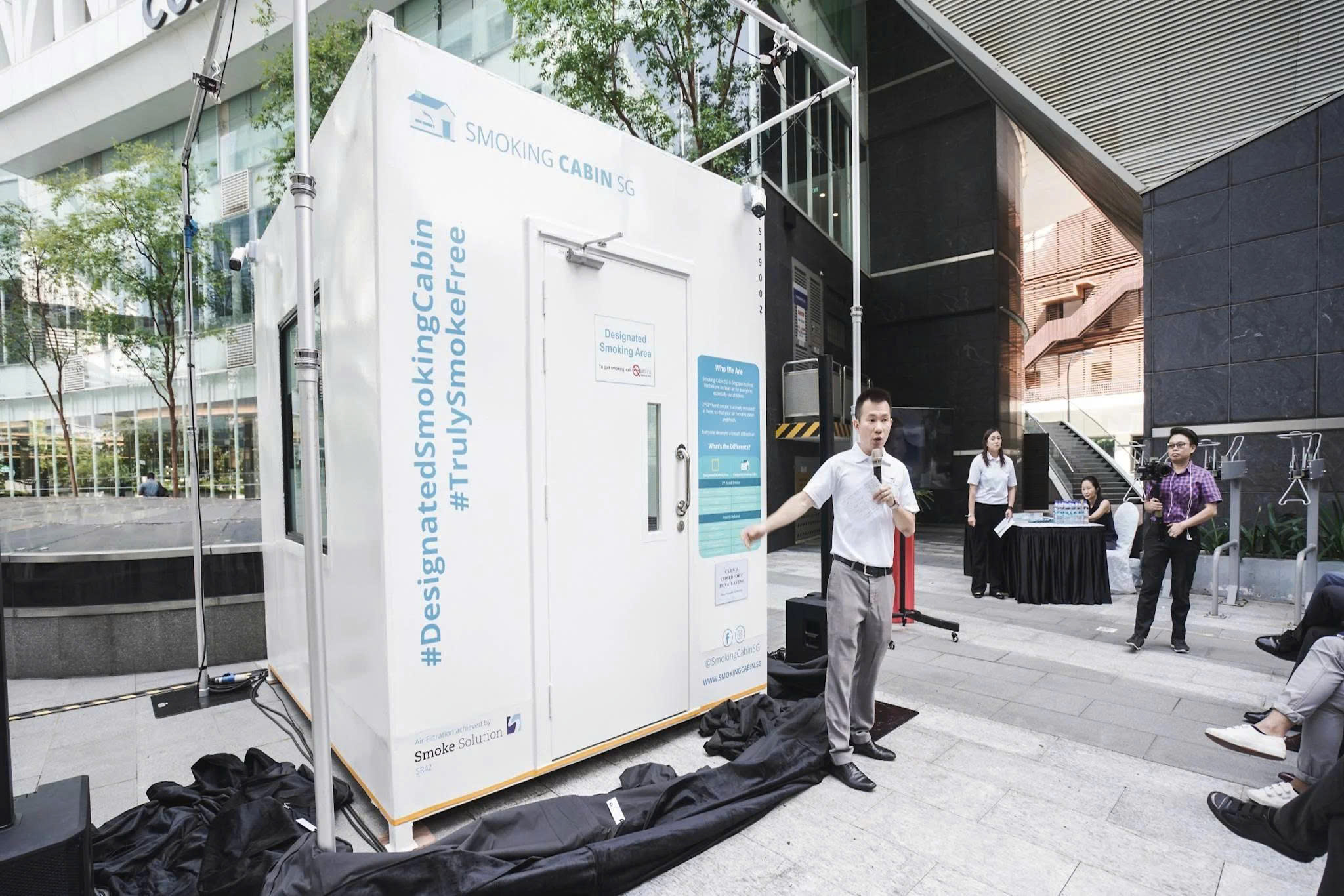 Một cabin hút thuốc được trang bị hệ thống lọc, biến khói thuốc lá thành không khí sạch, đã được lắp đặt bên ngoài toà nhà Fusionopolis tại Singapore. Nó sử dụng hệ thống lọc ba lớp, được phát triển ở Đan Mạch.