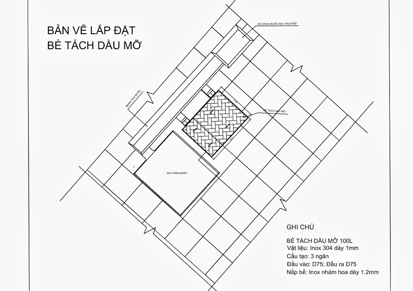 Chú thích: Trong nhà ăn, xưởng chế biến thức ăn, bể lắng cát nên đặt trực tiếp ở ngay dưới các chậu rửa.