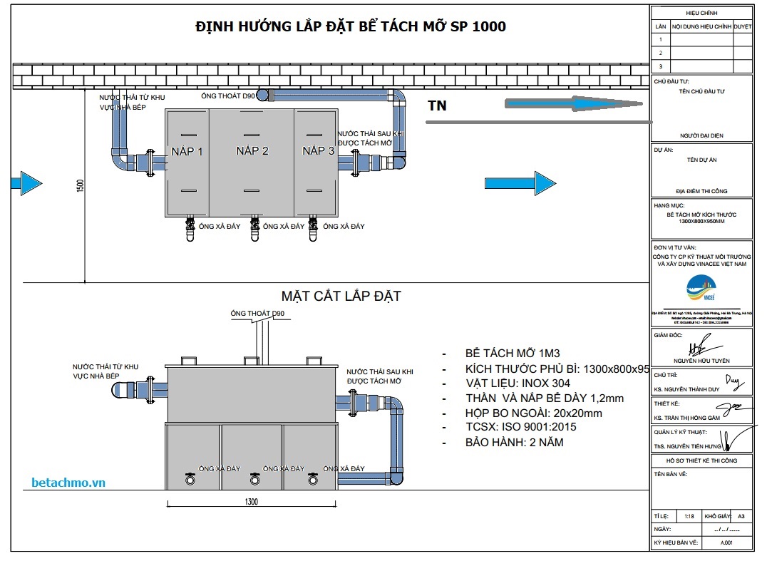 + Hướng dẫn vận hành và bảo dưỡng bể tách mỡ (XEM TẠI ĐÂY)