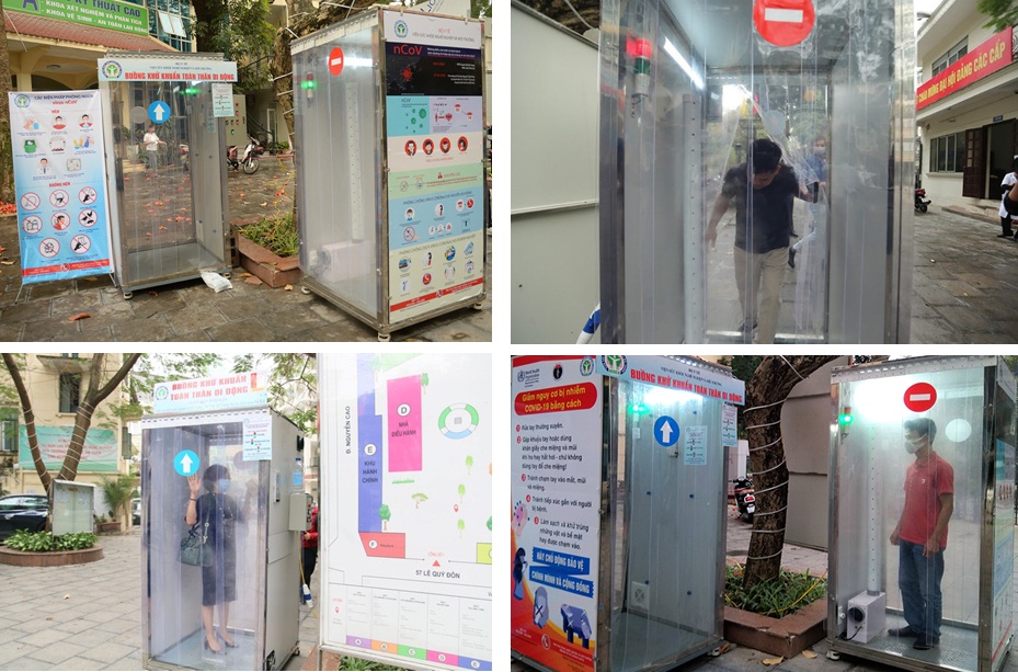 TS Nhân chia sẻ, để đối phó với Covid-19 tại Việt Nam, nhóm đã chủ động lên kế hoạch chế tạo buồng khử khuẩn toàn thân chỉ sau một tháng. Hiện buồng khử khuẩn của nhóm đã được lắp đặt thử nghiệm, đáp ứng công suất lên tới 1.000 người/ngày.