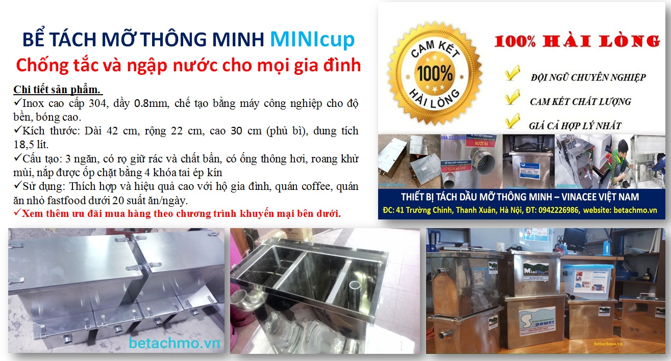 – Thiết bị tách mỡ hộ gia đình MINICUP: Dành cho các hộ gia đình, hộ kinh doanh quy mô nhỏ lẻ đặc biệt phù hợp với ác căn hộ chung cư có mặt bằng thoát nước rộng.