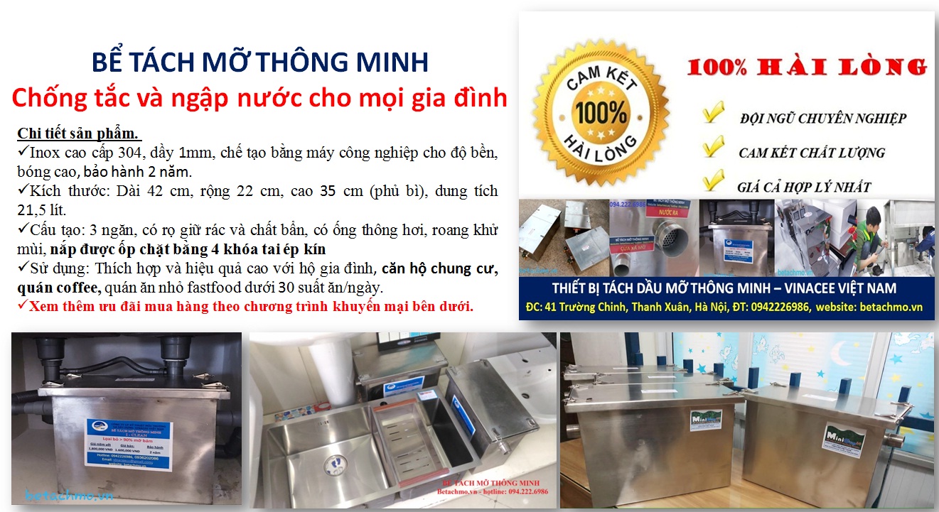 Bể tách mỡ là gì? Bể tách mỡ là thiết bị dùng để tách dầu mỡ thừa sau quá trình sơ chế thức ăn, vệ sinh ra khỏi nước thải. Được bố trí dưới chậu rửa trong bếp nhà hàng, khách sạn hay bếp ăn gia đình, căng tin … Nhằm ngặn chặn dầu mỡ thừa dính bám gây tắc nghẽn đường ống hoặc thải trực tiếp ra môi trường gây ô nhiễm môi trường.