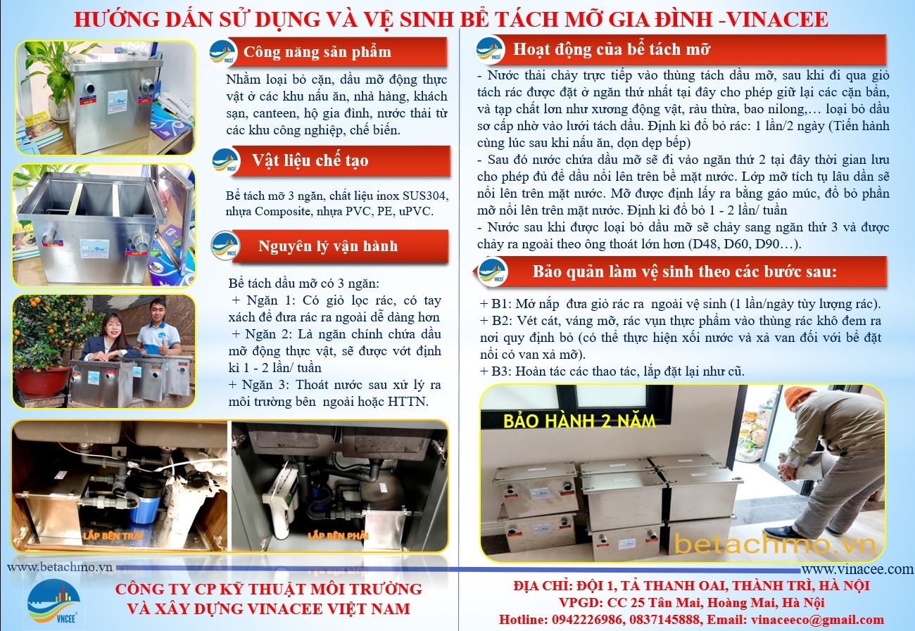 Trên đây là những thông tin về bể tách mỡ. Hy vọng bài viết đã cung cấp những thông tin hữu ích cho các bạn. Nếu có bất cứ ký kiến thắc mắc nào các bạn có thể để lại lời nhắn trên box chat hoặc gửi yêu cầu về hòm thư của công ty.