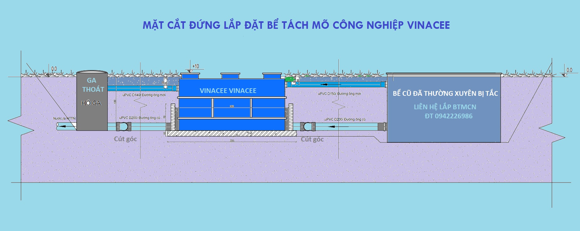 + Lắp đặt đúng quy cách (Tham khảo hướng dẫn lắp đặt bể tách mỡ)