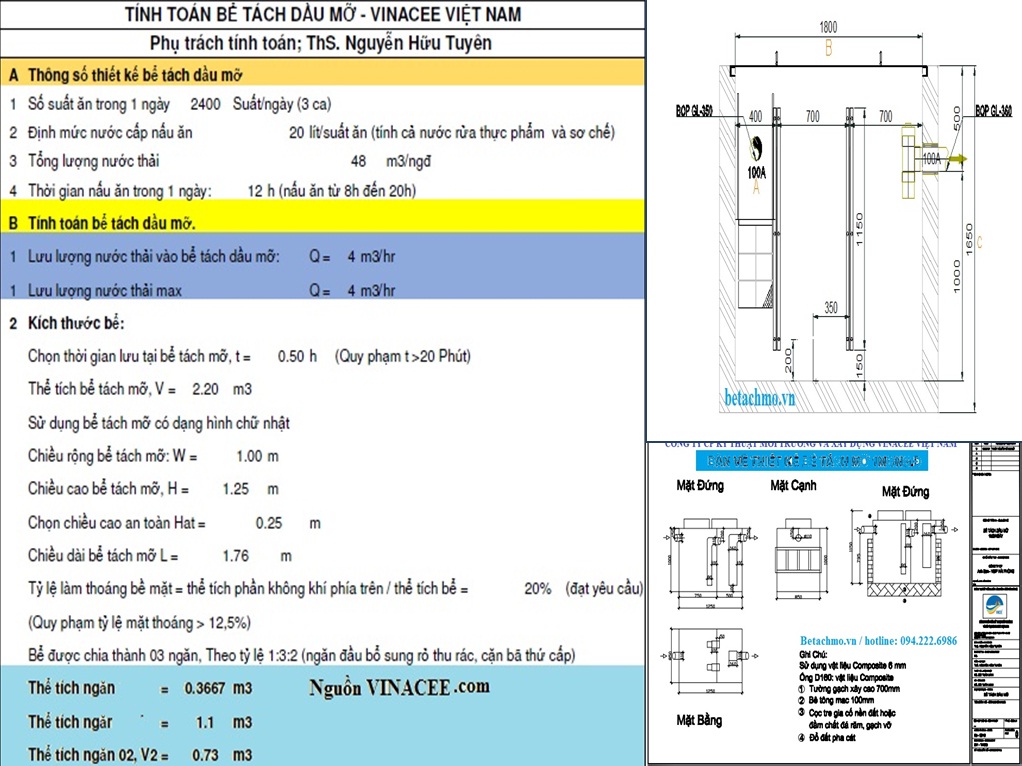 Đáp ứng các tiêu chỉ đó với mong muốn đem lại cho khách hàng những giá trị dịch vụ tốt nhất VINACEE Việt Nam đưa ra các bản hướng dẫn tính toán thiết kế bể tách mỡ, giúp khách hàng có sự lựa chọn chủ động, phân biệt rõ hơn các dòng sản phẩm từ đố có quyết định đúng đắn trong việc lựa chọn dịch vụ.