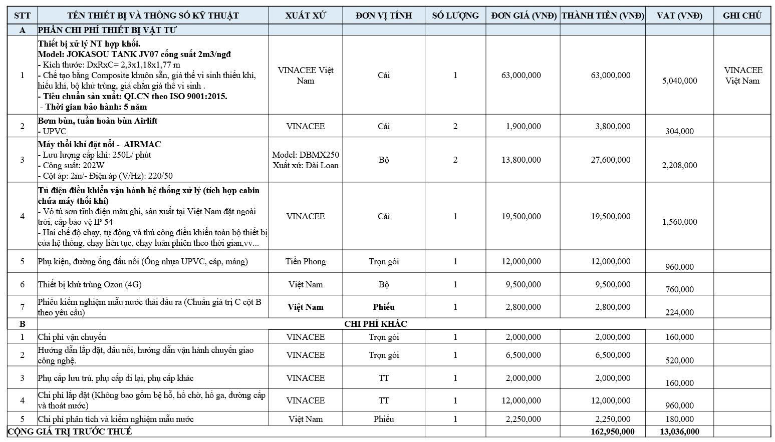 CÔNG TY CP KỸ THUẬT MÔI TRƯỜNG VÀ XÂY DỰNG VINACEE VIỆT NAM