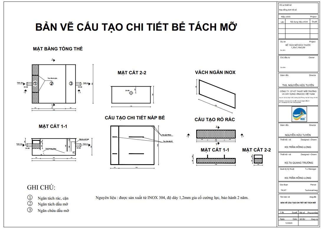 Đáp ứng các tiêu chỉ đó với mong muốn đem lại cho khách hàng những giá trị dịch vụ tốt nhất VINACEE Việt Nam đưa ra các bản hướng dẫn tính toán thiết kế bể tách mỡ, giúp khách hàng có sự lựa chọn chủ động, phân biệt rõ hơn các dòng sản phẩm từ đố có quyết định đúng đắn trong việc lựa chọn dịch vụ.