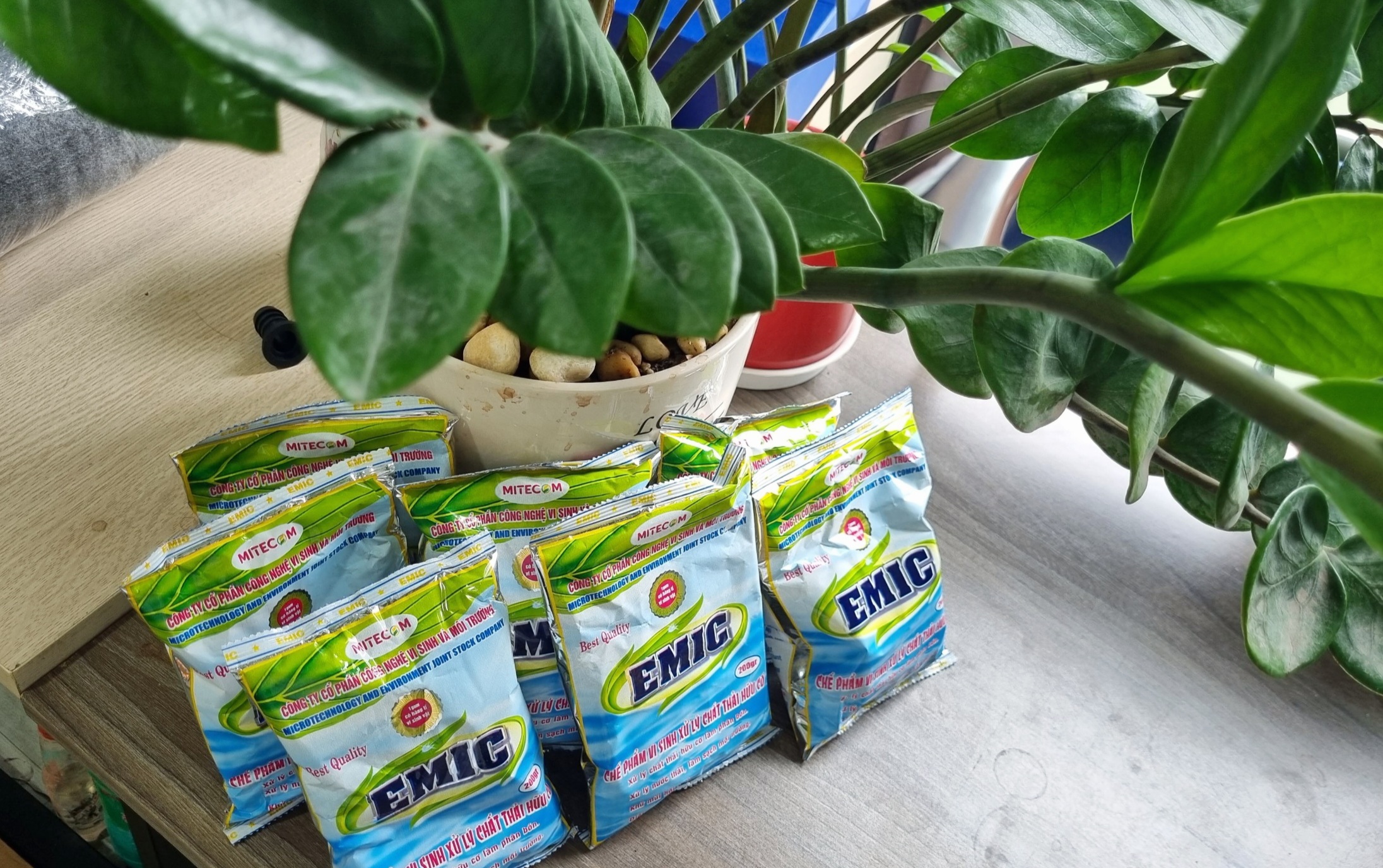 -Hoà một gói chế phẩm EMIC (200g) vào 20 lít nước bổ sung 1kg rỉ đường (hoặc đường đen, đường phèn), đậy kín để 3 ngày.