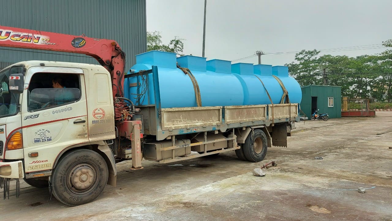 Hệ thống bồn xử lý nước thải có thể là hệ thống gồm 2 bồn: 1 bồn tròn (dùng để lắng bùn, lắng cặn, cao su…) và 1 bồn chữ nhật (dùng để lọc ….) có các gân tăng cứng bằng thép được bọc phủ composite (FRP) bên ngoài; hoặc hệ thống 02 bồn tròn 10m3 + 15m3 (cho các nhà máy lớn), hệ thống 02 bồn tròn cho các nhà máy nhỏ (4m3 + 6m3)