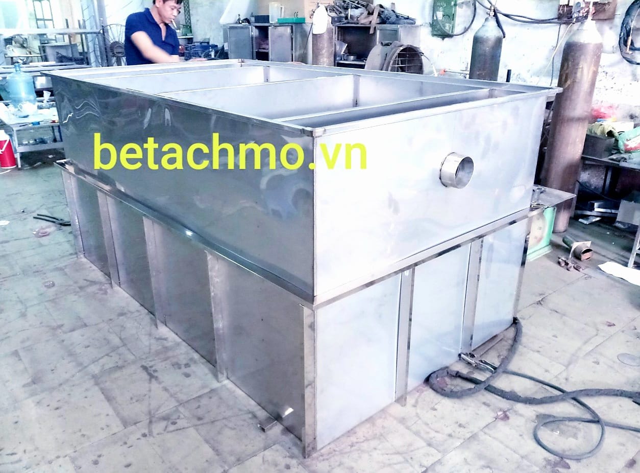 Thùng lọc mỡ cao cấp cấu tạo bể tối thiểu: 3 ngăn với 3 chức nắc rõ ràng và cần thiết, có rọ giữ rác và chất bẩn, ngăn tách mỡ chính được tính toán theo TCVN, có phần ống thông hơi (hộp thông hơi), roang khử mùi. Quá trình chế tạo chủ yêu ấp dụng các biện pháp công nghiệp, gia công trên máy sau đó kiểm tra và xử lý tinh bàng biện pháp thủ công vì vậy sản phẩm có đường nét đẹp, các phần kỹ thuật tinh tế