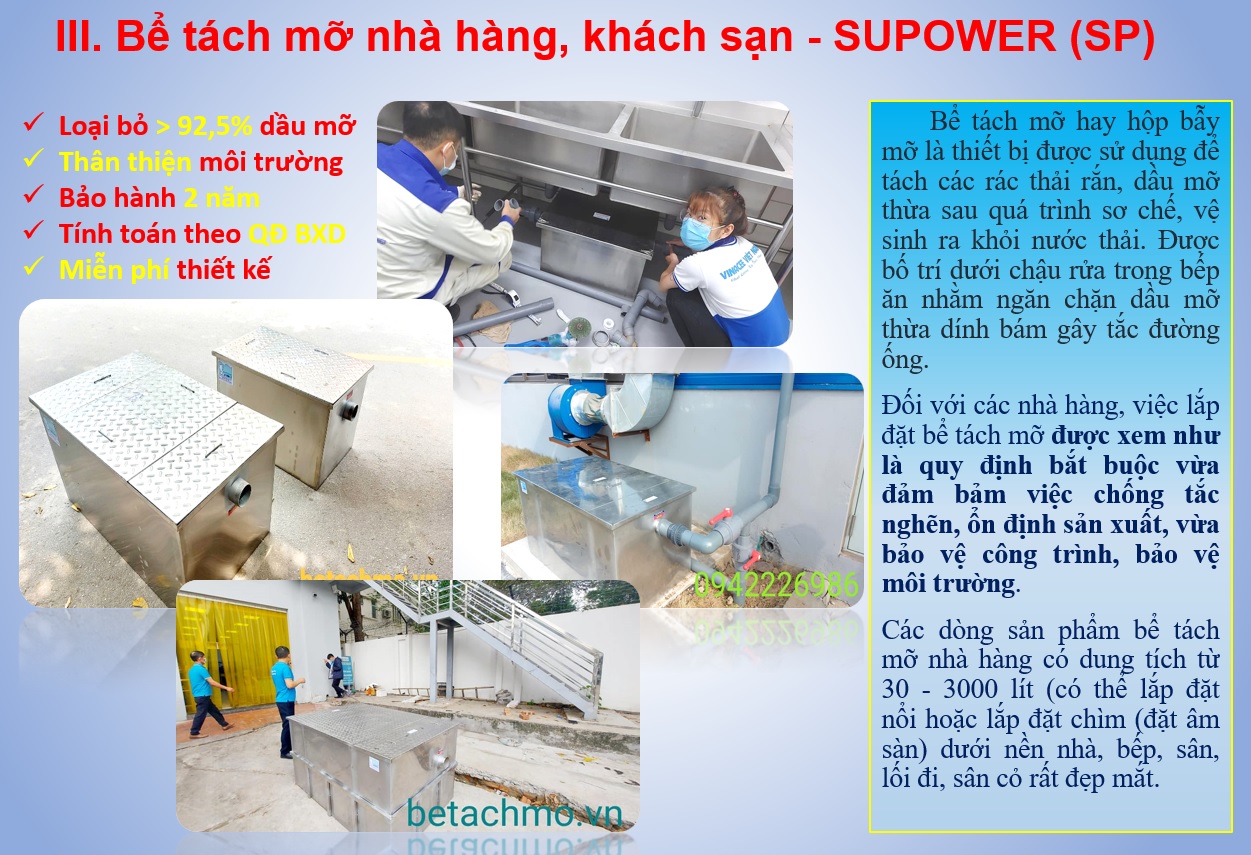 Bể tách mỡ là một thiết bị xử lý chất thải, tách bỏ dầu, mỡ tránh gây tắc nghẽn đường ống, bảo vệ công trình cũng như góp phần bảo vệ môi trường. Ngày nay, để hoạt động sản xuất kinh doanh diễn ra thường xuyên hơn, đồng thời đáp ứng các quy định xử phạt hành chính của nhà nước về bảo vệ môi trường và xả thải nước thải.
