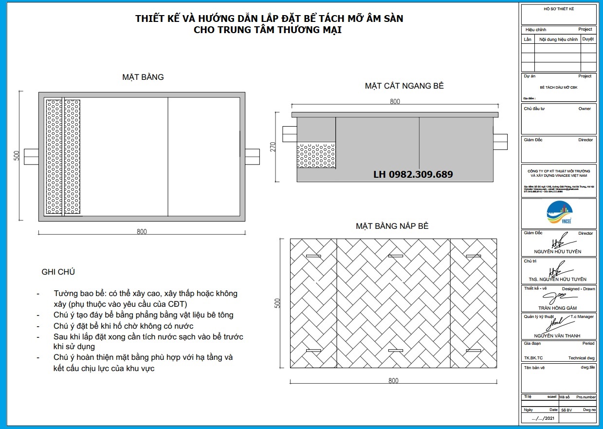 Mẫu lắp đặt bể tách mỡ hiệu quả cho hệ thống trung tâm thương mại LH KS Trần Vy Vy (0982.309.689/Zalo).