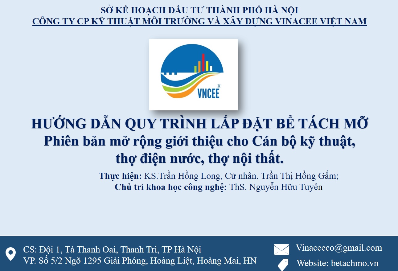 Tài liệu hướng dẫn lắp đặt bể tách mỡ cho cán bộ kỹ thuật và kỹ sư cấp thoát nước