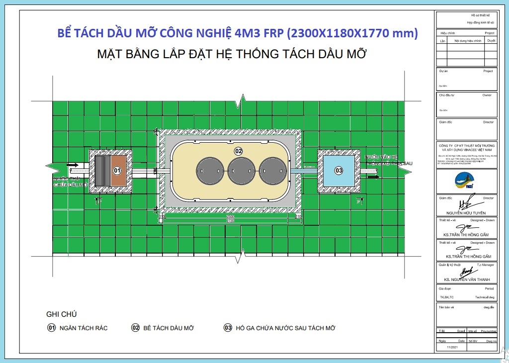 Bể tách dầu mỡ do VINACEE Việt Nam thiết kế và sản xuất, nhằm mang lại cho khách hàng giải pháp tốt nhất, giúp môi trường sạch hơn, cùng nhau xây dựng đất nước phồn vinh và tươi đẹp.