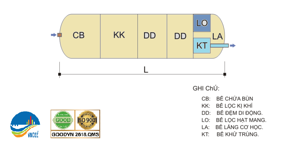 Nước thải được xử lý triệt để qua hoạt động phân hủy các chất ô nhiễm có trong nước thải của hệ vi sinh vật kỵ khí, thiếu khí và hiếu khí.