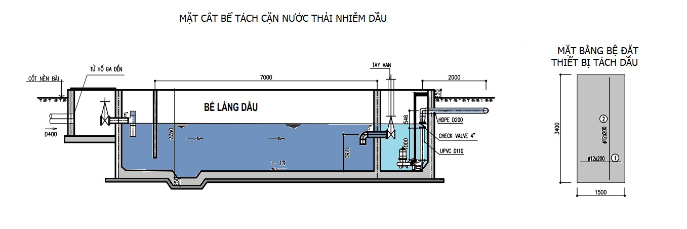 Thiết kế và nguyên lý làm việc của bể lắng gạn dầu, hố ga tách dầu trong xlnt gara và cửa hàng xăng dầu