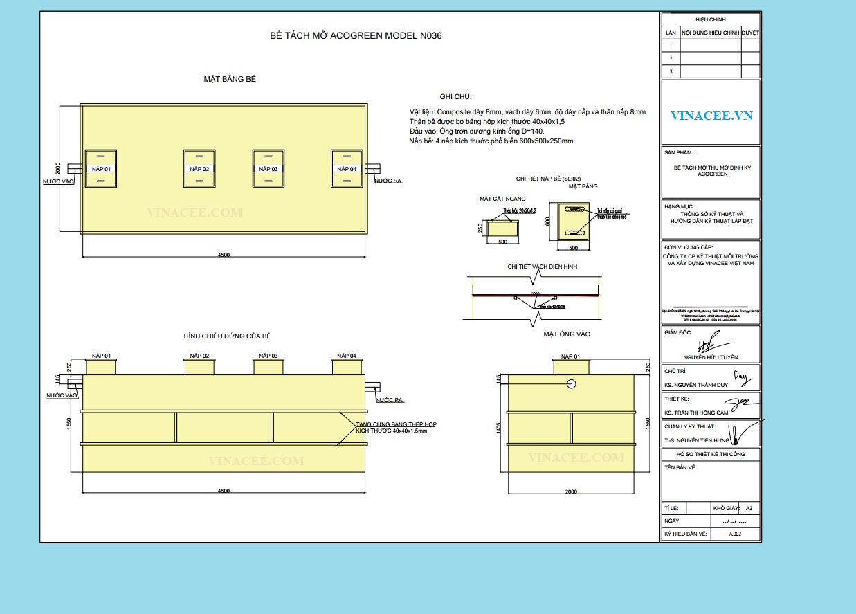 Vậy để hiểu rõ bể tách mỡ là gì? Làm thế nào để lựa chọn được sản phẩm phù hợp, đảm bảo sử dụng ổn định lâu dài VINACEE Việt Nam xin được cung cấp thư viện ảnh bể tách mỡ để Quý khách hàng dự án dễ hình dung khi tìm hiểu về sản phẩm.