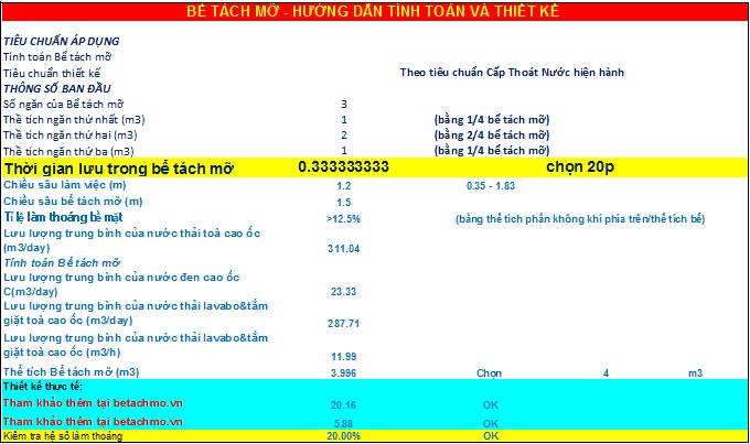 Tính toán và thiết kế bể tách mỡ, thùng lọc mỡ