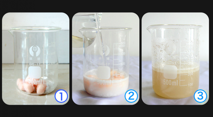Bước 3: Dùng quặng đặt trên miệng ống của bồn rửa, tiếp theo hãy đổ toàn bộ nước giấm có sẵn vào đó, để tiến hành thông tắc chậu rửa bát. Ngay sau đó, bạn sẽ nghe một vài âm thanh nhỏ phát ra nhưng đừng lo lắng, bởi giữa giấm ăn và baking soda đang xảy ra các phản ứng hóa học có lợi, giúp tẩy sạch hoàn toàn các chất cặn bã làm bít đường ống thoát nước.
