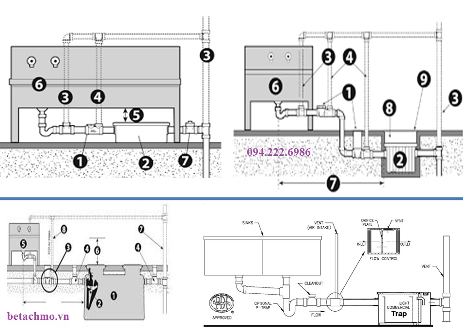 Mô tả tóm tắt 8 vị trí lắp đặt thiết bị tách dầu mỡ bằng sơ đồ