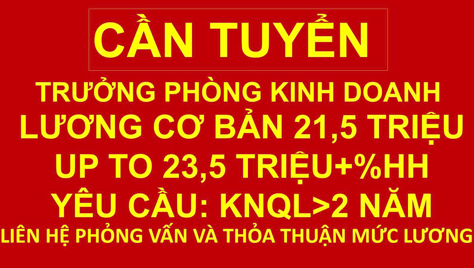 THÔNG BÁO TUYỂN DỤNG: CHỨC VỤ TRƯỞNG PHÒNG KINH DOANH (SALES MANAGER)