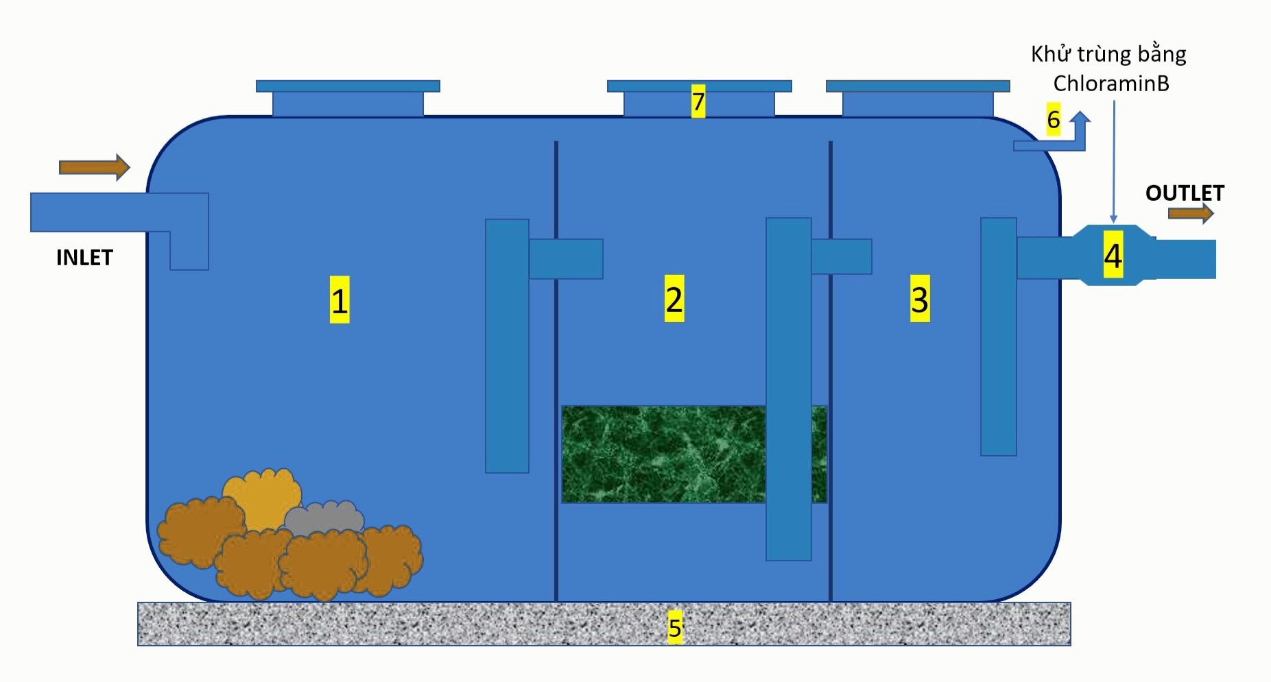 Bể septic ngang Sơn Hà được chia thành 2 ngăn: ngăn chứa chất thải vào và ngăn lọc nước thải ra.