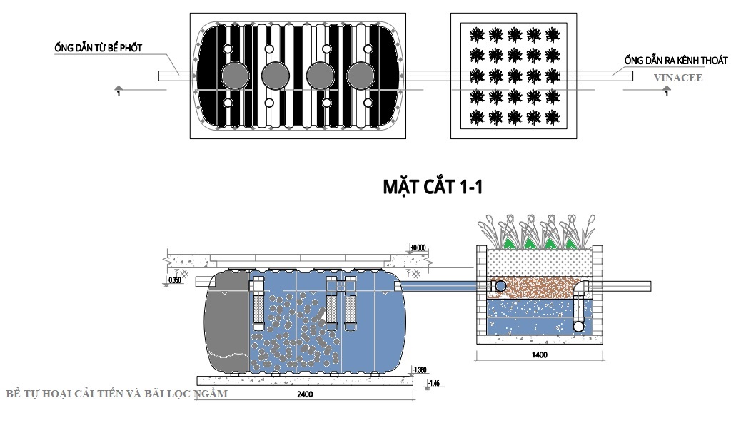 Nhiều thực nghiệm cho thấy hiệu quả rõ dệt của bể tự hoại cải tiến tỏng việc cải thiện môi trường tại các điển phát sinh nước thải cục bộ, khu dân cư phân tán như Trường học, nhà ăn cán bộ, căng tin, đặc biệt khi bể tự hoại cải tiến kết hợp bãi lọc ngầm trồng cây giúp làm sạch nước thải đảm bảo Quy chuẩn Quy định.